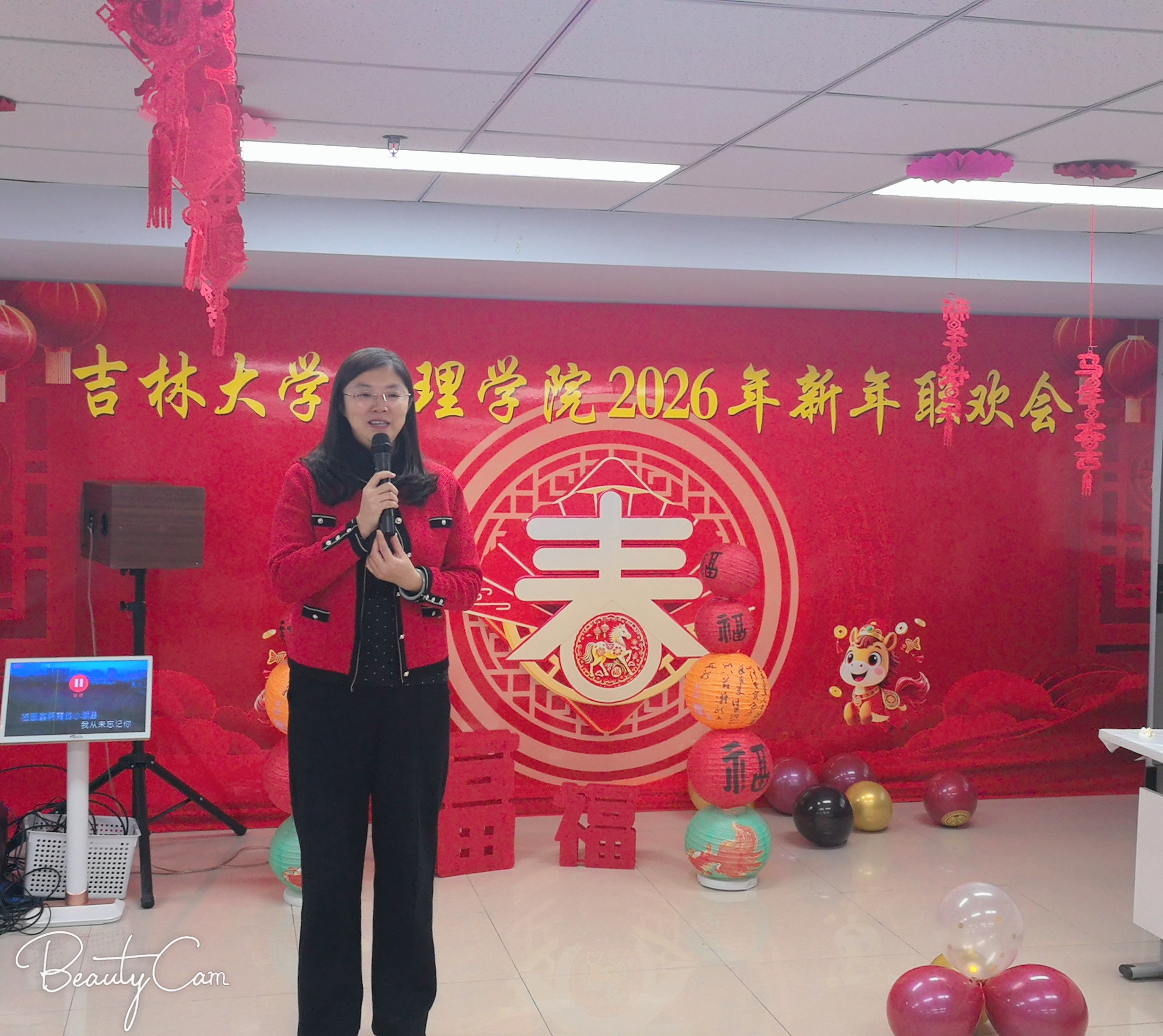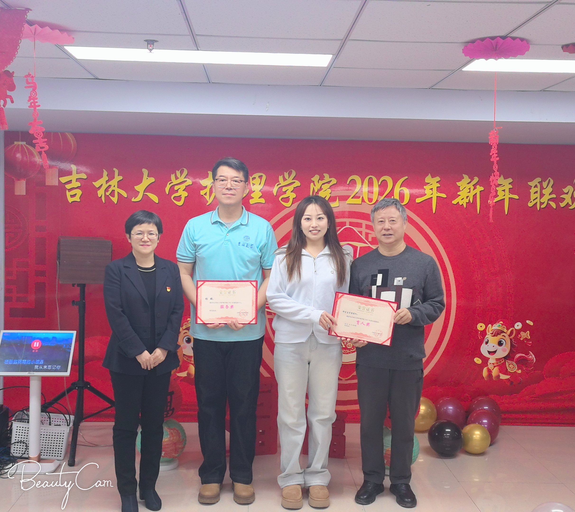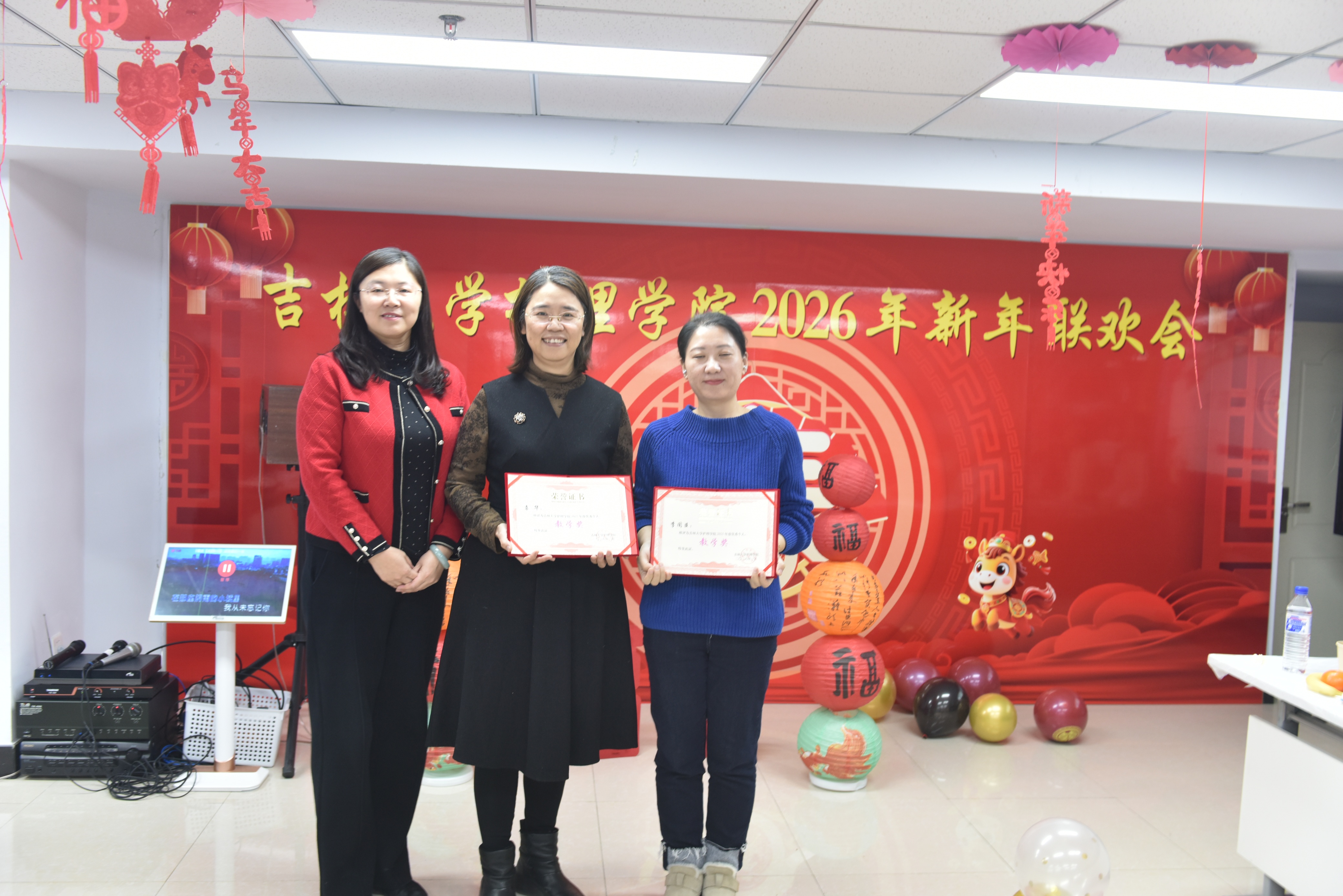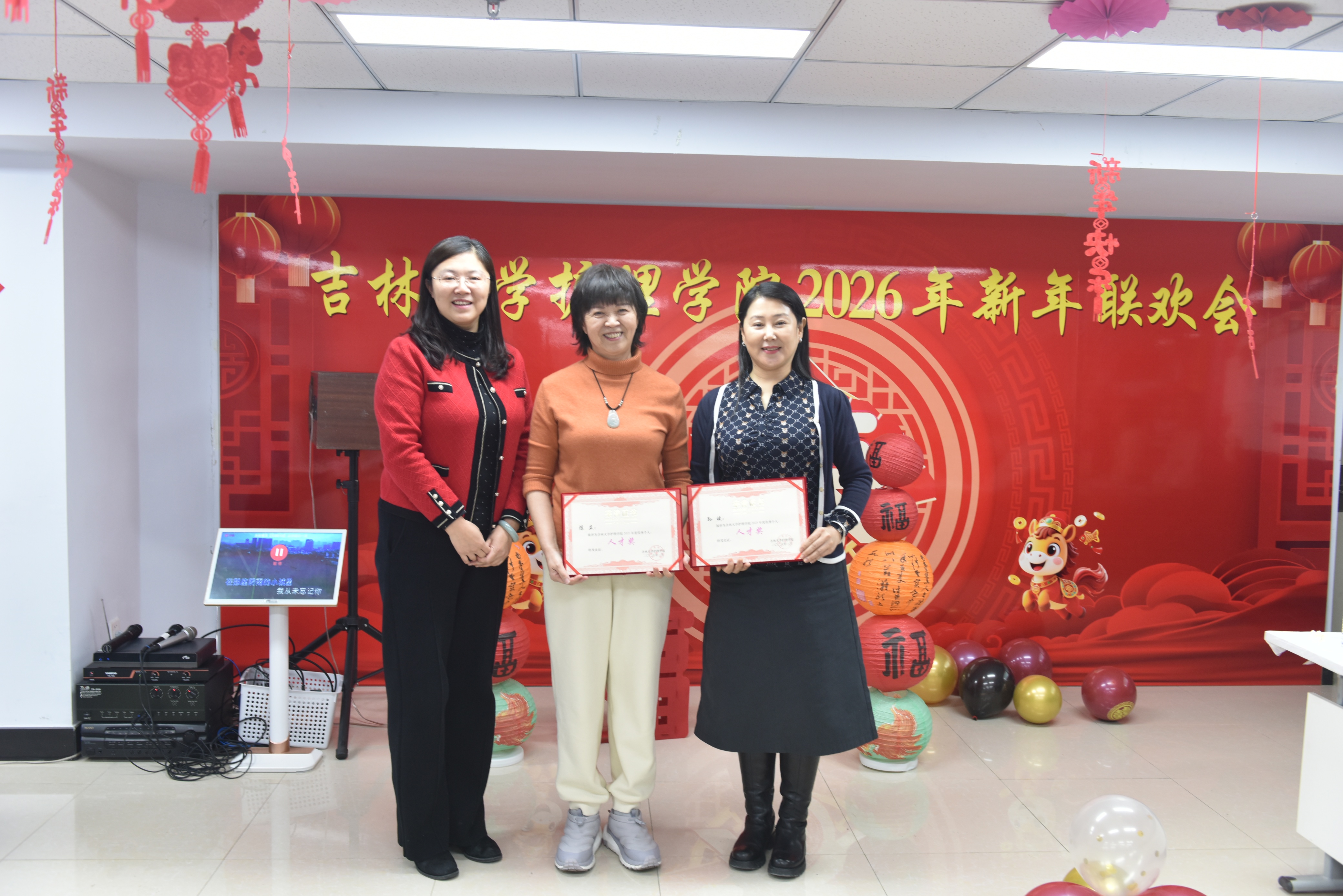 联欢会伊始,学院党委书记韩月波登台致辞。她深情寄语全院教职工,送上诚挚的新年祝福,既回望了过去一年学院发展的坚实足迹与丰硕成果,也擘画了新一年砥砺前行的奋进蓝图,话语间满含期许,为整场活动奠定了温暖而昂扬的基调。致辞过后,学院表彰环节,对年度优秀个人予以表彰并颁发奖状,以榜样为旗,激励全体教职工在新的一年里勇毅笃行、再创佳绩。